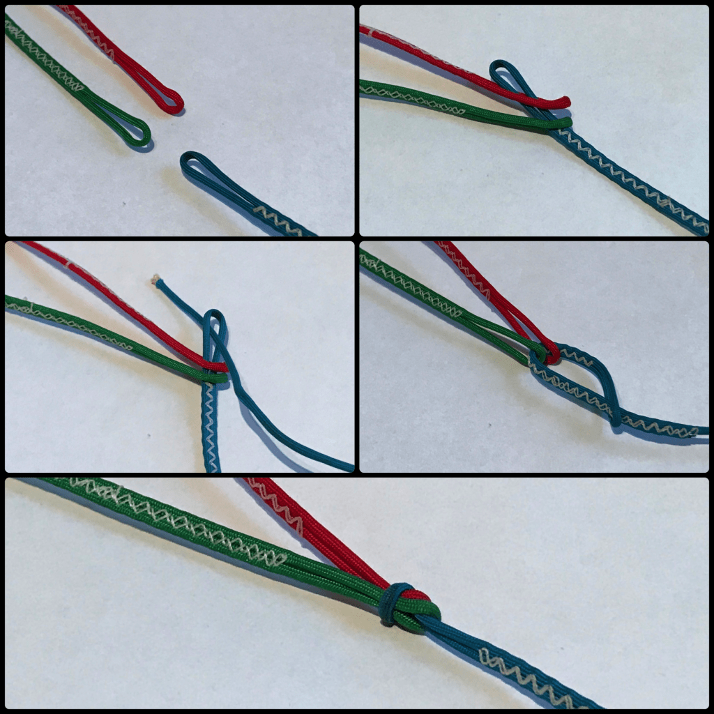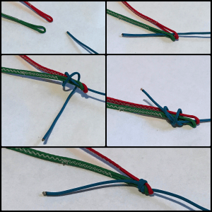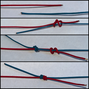 Dva volné konce doporučuji svázat nejlépe dvojitým rybářským uzlem. Je trochu složitější, ale dost pevný a bude držet i bez dalších objemných pojišťovacích uzlíků.