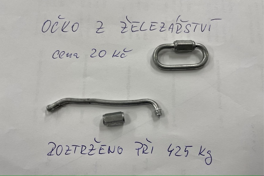 • budeme připraveni na naši hydraulické trhačce otestovat jakákoliv vámi donesený pevnostní prvek používaný v PG vybavení tahem max. 3,5 tuny.