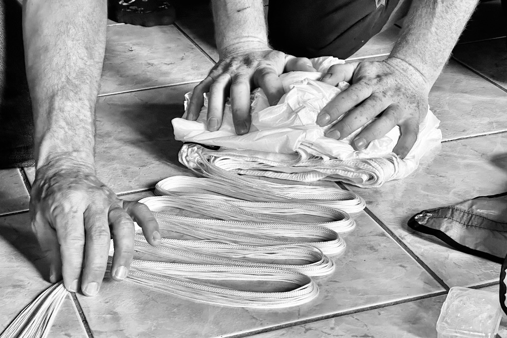 • cca 7:00 – začneme s kontrolou a balením záložních padáků