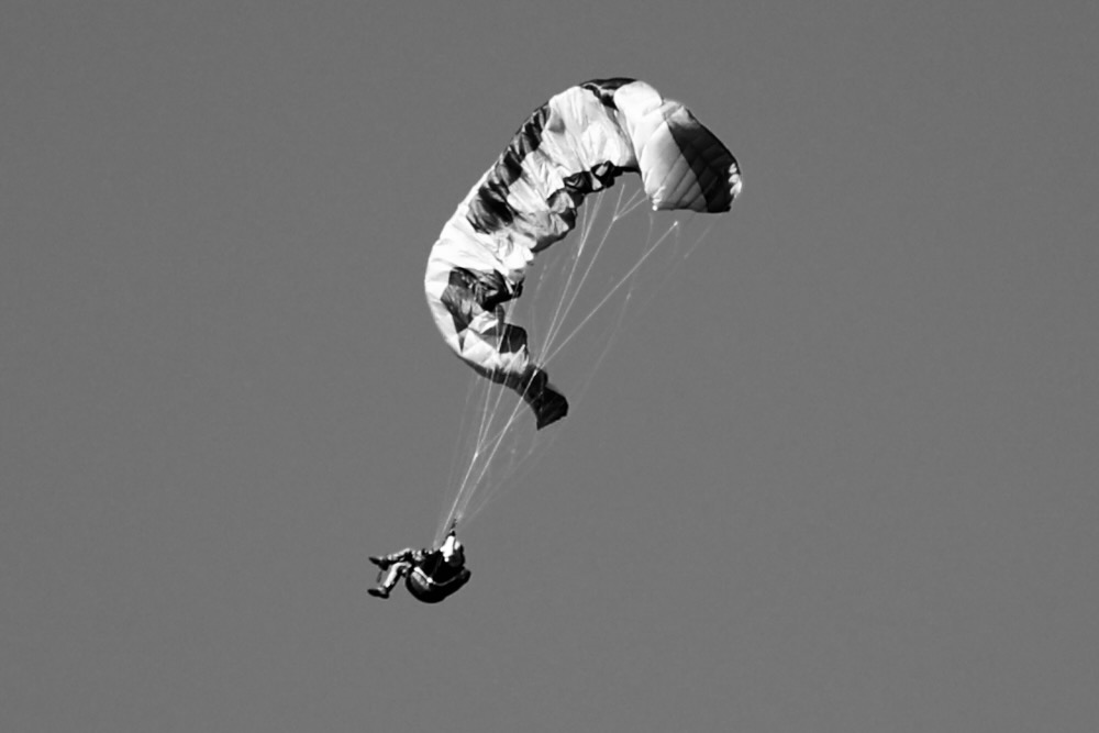 Po odhození záložního padáku: