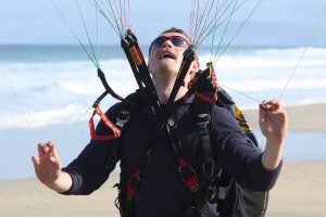 Přistání na břehu moře může být extrémně nebezpečné. Na pláž přistávejte zásadně podél břehu, i když vane na břeh („přistával bych proti moři a co kdybych přeletěl?“), i když vane na moře („přistával bych z moře na pevninu a co kdybych nedoletěl?!“). A pozor, ať vám kluzák nespadne do vody. Jednak slaná voda (a hlavně později vykrystalizovaná sůl) materiál padáku ničí a potom jsou tam ty vlny, které snadno schlamstnou křídlo i s postrojem a vším, co je v něm (stačí, aby se několik komor naplnilo vodou a už bude moře silnější, než vy).