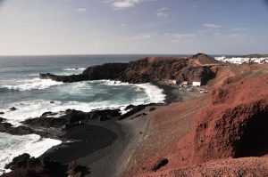 Divoké opuštěné pláže na odlehlém severu jihovýchodně od městečka Orzola svým bílým pískem ostře kontrastují s okolními černými lávovými poli.