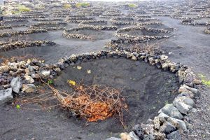 Vinice mají zcela specifickou architekturu. Pokrývka z černého vulkanického písku a stěny ze sopečného kamene kolem každého nízkého keře révy chrání rostliny před neustálým větrem a spalujícím sluncem a udržují konstatntní vlhkost v půdě. Práce na vinicích jsou kvůli tomuto zvláštnímu uspořádání vedeny výhradně manuálním způsobem od výsadby až po sběr hroznů.