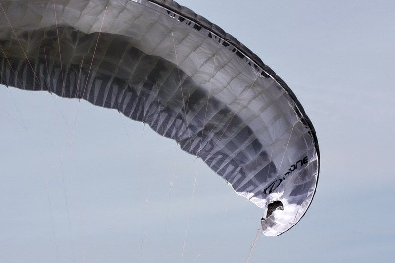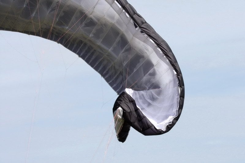 – po masivním zboření části nebo celé náběžné hrany (např. při létání na speedu) může zvláště u závodních padáků zůstat ucho vrchlíku zavlečeno ve šňůrách,