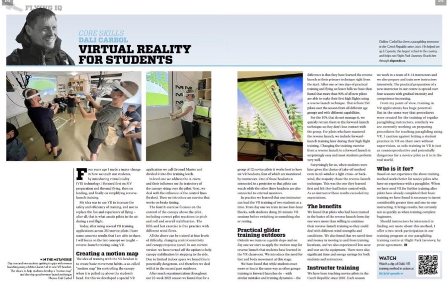 Samozřejmě to není běžné, že v největším světovém paraglidingovém časopisu otisknou podrobný popis nějaké nové tréninkové metody jednoho konkrétního výcvikového střediska paraglidingu. Tím spíše vyvinutou mimo tradiční „alpské“ školy. Tady to je :o)…