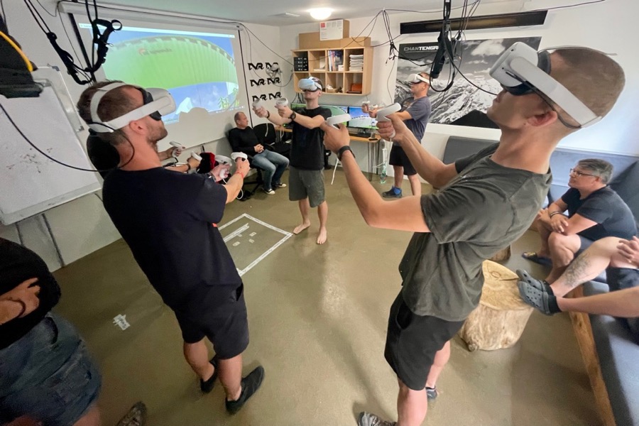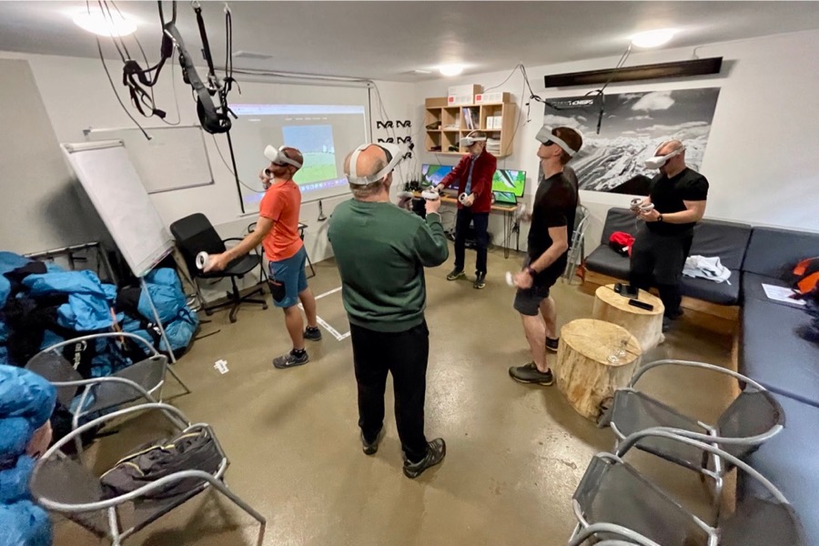 • 6 VR headsetů, z toho 4 přímo monitorované dobře proškolenými instruktory, jeden headset připojený do dataprojekturu pro možnost sledování různých reakcí piloty odpočících mezi tréninkem, další 3 headsety jsou připojené k externím monitorům,
