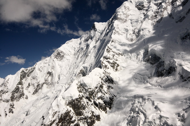 Také u první varianty bylo samozřejmě odhadnutí potřebné výšky pro přehoupnutí se přes onu ostrou hranu mezi Rakaposhi a Dirhanem klíčové. Špatný odhad by nás s následným návratovým sklouznutím do zastíněných a zařezaných míst Hunza Valley velmi pravděpodobně zastavil na jeden až dva další dny a letové okno by se kriticky zmenšilo. Museli bychom čekat na další příležitost po přechodu fronty. Ale jinak byla celá dispozice hor poměrně přehledná.