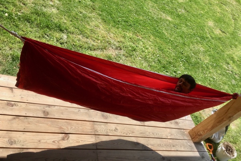 No a teď už stačí dvě kovové majlonky nebo karabinky, vybrat správné místo na zavěšení a vyzkoušet si, jak dobře se ve starém záložáku leží.