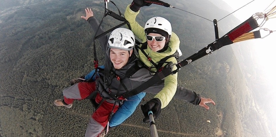 Následuje krátký rozběh směrem z kopce dle pokynů instruktora a pak již samotný let. Během tandemového letu budete sedět vpředu před instruktorem a výhled na okolní krajinu tak bude přímo před vámi.