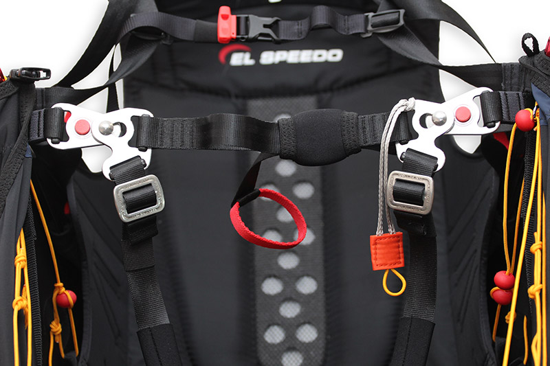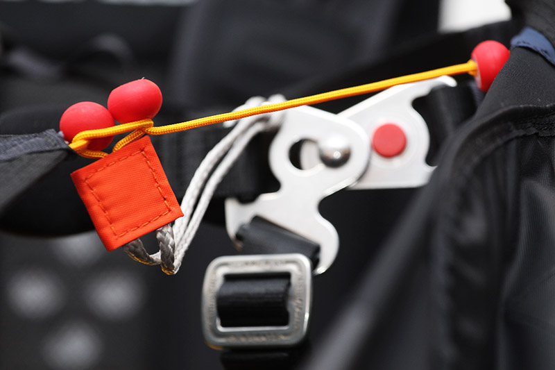 Jednoduchost vytažení záložního padáku z vnějšího kontejneru má zásadní vliv na výsledek jeho použití. Naopak nechtěné otevření kontejneru při startu či za letu může mít fatální důsledky. Tomu, aby použití záložního padáku bylo jednoduché a přitom bezpečné, věnujeme při vývoji maximální pozornost. Klika záložního padáku je v sedačce CHOGORI uložena v neoprenovém pouzdře a zajištěna dvěma malými magnety. Kontejner je zajištěn nylonovými strunami a jeho úplné rozevření je řešené pomocí zipového systému.