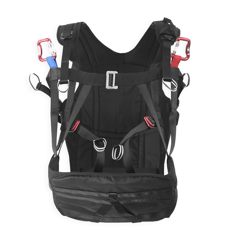 Při tréninku ve dvojicích či s instruktorem dávají zádová madla možnost trénujícímu efektivně pomoci při stabilizaci postoje i rychlému bočnímu posunu pro lepší kontrolu padákového kluzáku nad hlavou.